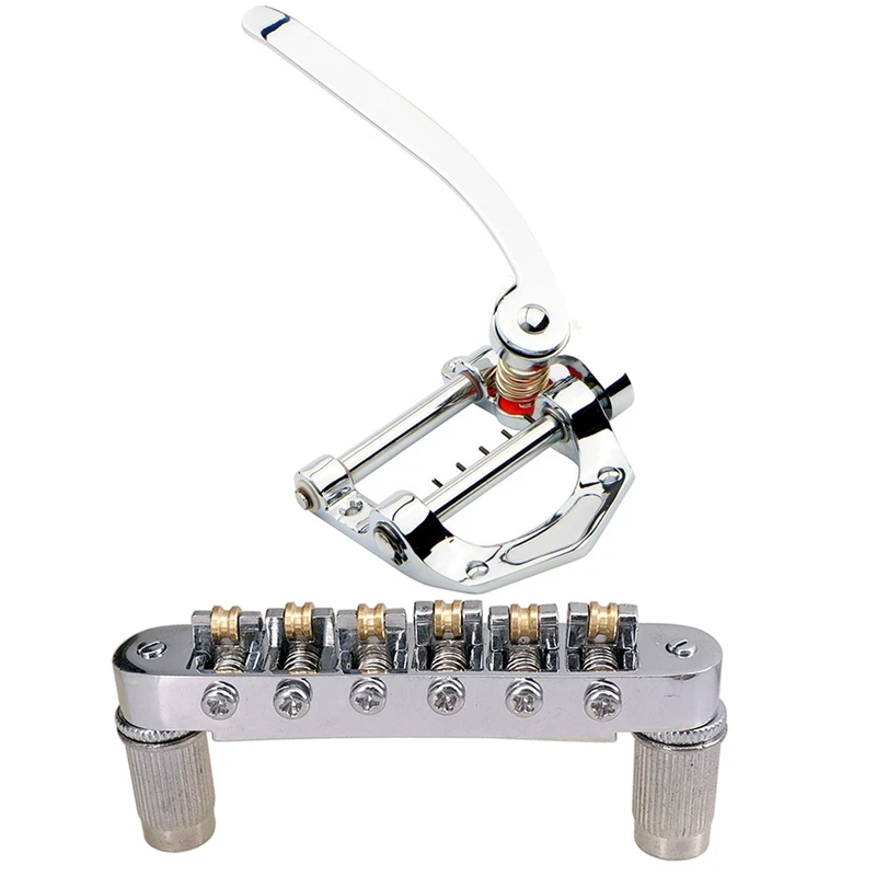 1Pcs Guitar Vibrato Tailpiece Tremolo Flat Top Body Tremolo Unit Vibrato Bridge Silver & 1Pcs Tune-